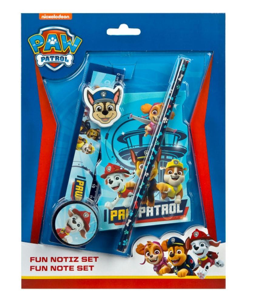 Dětská 5 - dílná psací souprava Tlapková patrola. Rozměry: 24 cm x 17 cm. Obsahuje: zápisník, pravítko, ořezávátko, gumu a tužku. Oficiální licence.