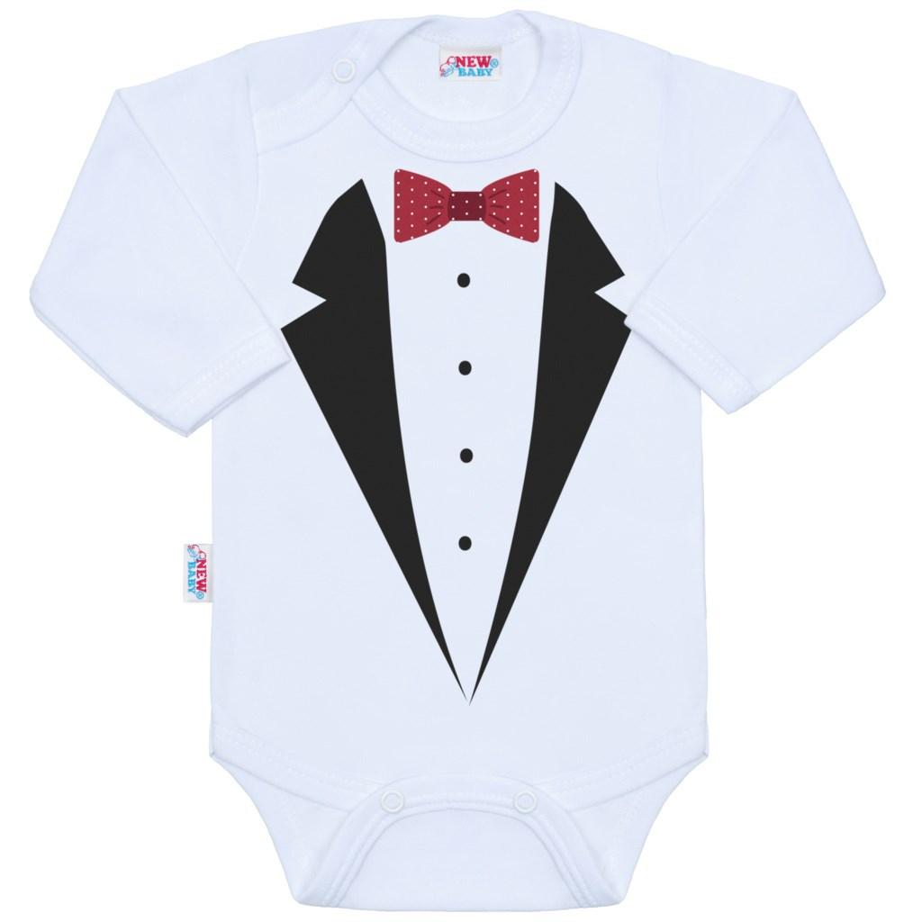 Originální kojenecké body s dlouhým rukávem New Baby, s obrázkem smokingu. Dárkové balení. Barvy použité k potisku jsou certifikované a vhodné pro miminka. Body má zapínáni na cvočky na ramínku a mezi nožičkami, což usnadňuje oblékání a přebalování. Oblečení je z kvalitního materiálu: 100% bavlna.