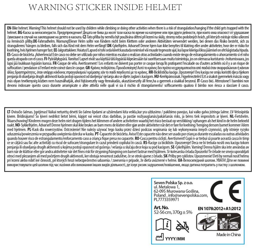Tuto přilbu by děti neměly používat při lezení nebo jiných činnostech, kdy hrozí riziko uškrcení - zavěšení, pokud by se dítě o přilbu zachytilo.