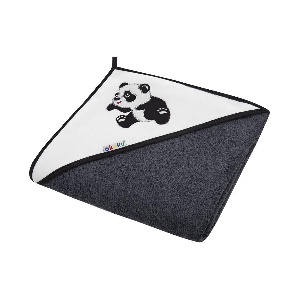 Dětská osuška Akuku s obrázkem a kapucí. Černá barva. Osuška je vyrobena z příjemného a měkkého materiálu. Vnitřní strana osušky je bavlněná, vnější fleecová. Rozměry: cca 100x100 cm. Složení: 100% bavlna.