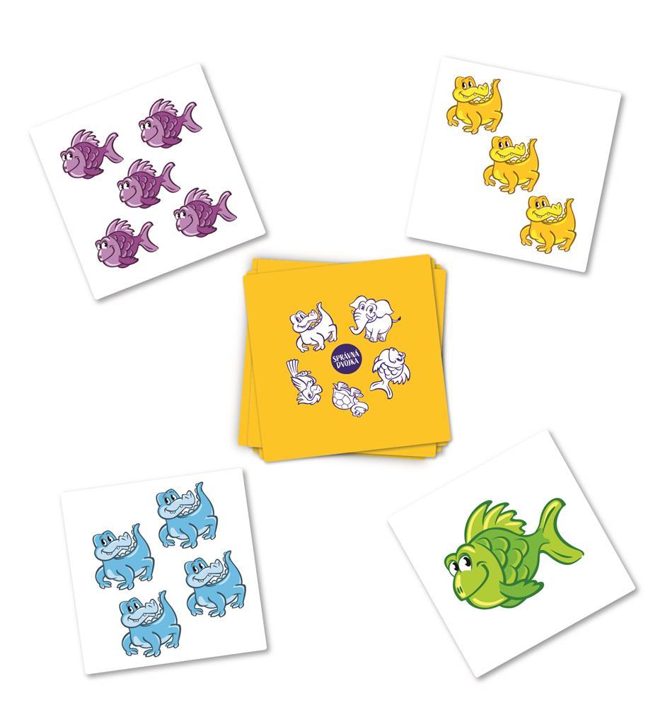 V této zábavné hře vykládáte karty zvířátek. Zvířátek je čím dál víc, ale pozor, kategorie zadání se mění každým otočením karty. Hledáte stejnou barvu, zvířátko, anebo počet? Kdo najde tu správnou dvojku jako první, získá karty. Hra procvičuje postřeh, učí barvy a počítání. Cílem hry je získat během hry co nejvíce karet.