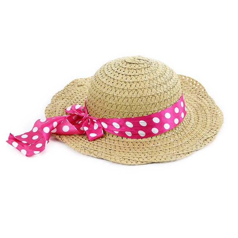 Krásný slaměný klobouk pro malé parádnice. Tento parádní kousek je navíc zdoben růžovou stužkou s bílými puntíky. Obvod klobouku je cca 53 cm.