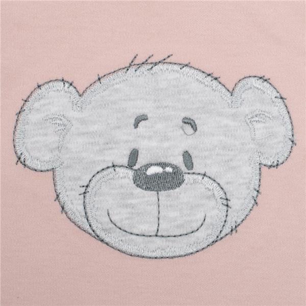 Bavlněné kojenecké body s krátkým rukávem a lemem české značky New Baby BrumBrum pro miminka. Růžová barva. Body je zdobeno roztomilou nášivkou s medvídkem. Nášivka je podlepená látkou proti poškrábání. Zapínání na cvočky na ramínku a mezi nožičkama usnadňuje oblékání a přebalování. Dětské oblečení je z materiálu 100% bavlna.