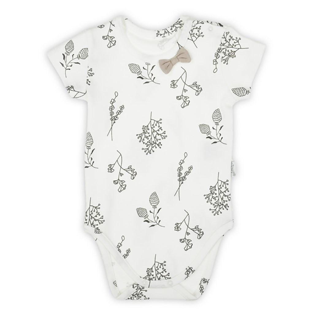 Bavlněné kojenecké body s krátkým rukávem Nicol Ella pro miminka. Bílá barva. Body zdobí krásný potisk. Zapínání na cvočky na ramínku a mezi nožičkama usnadňuje oblékání a přebalování. Dětské oblečení je z materiálu 100% bavlna.