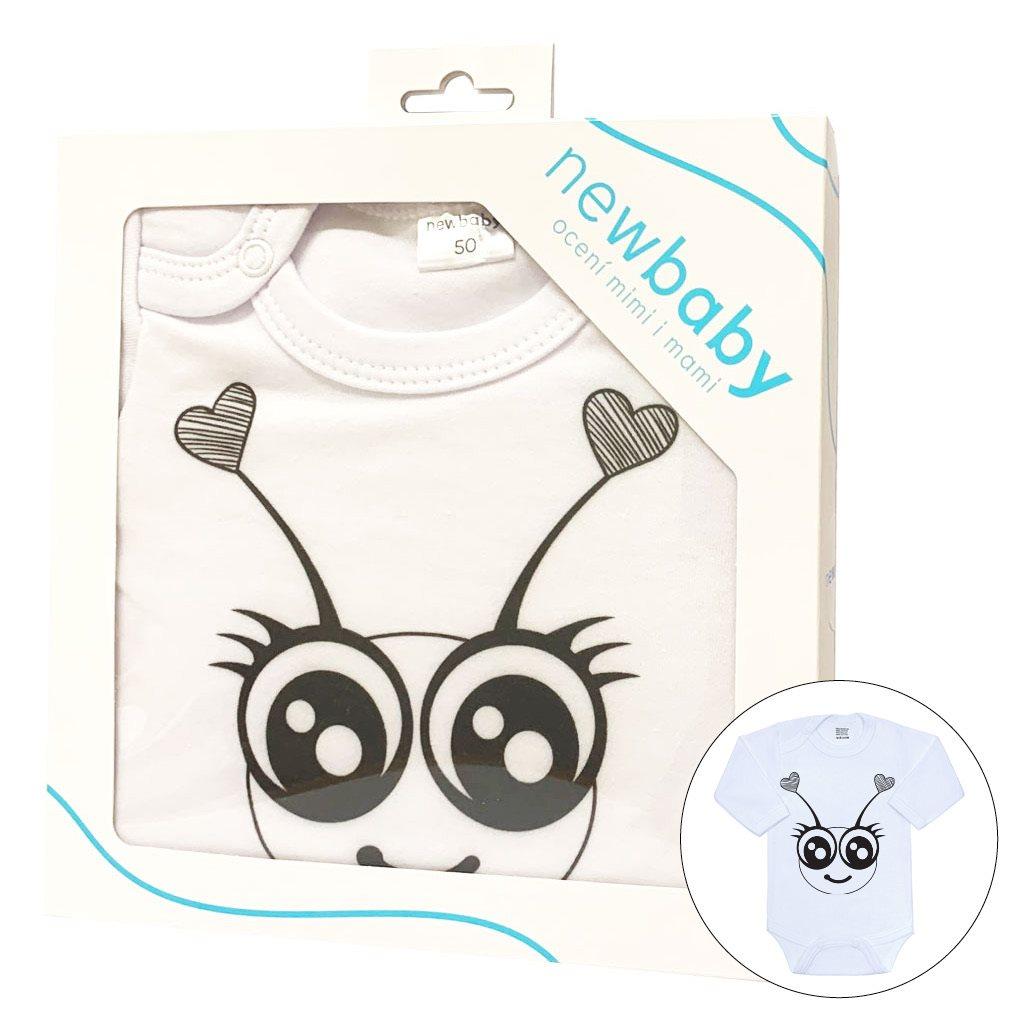 Originální kojenecké body s dlouhým rukávem New Baby Zvířátko Beruška, s roztomilým obrázkem zvířátka. Bílá barva. Přední stranu body zdobí zvířátko a na zadní straně je vyobrazen buď ocásek, žihadélko nebo křidélka. Vždy dle typu daného zvířátka. Barvy použité k potisku jsou certifikovány a vhodné pro miminka. Body má zapínání na cvočky na ramínku a mezi nožičkami, což usnadňuje oblékání a přebalování. Kojenecké oblečení je z kvalitního materiálu 100% bavlna.