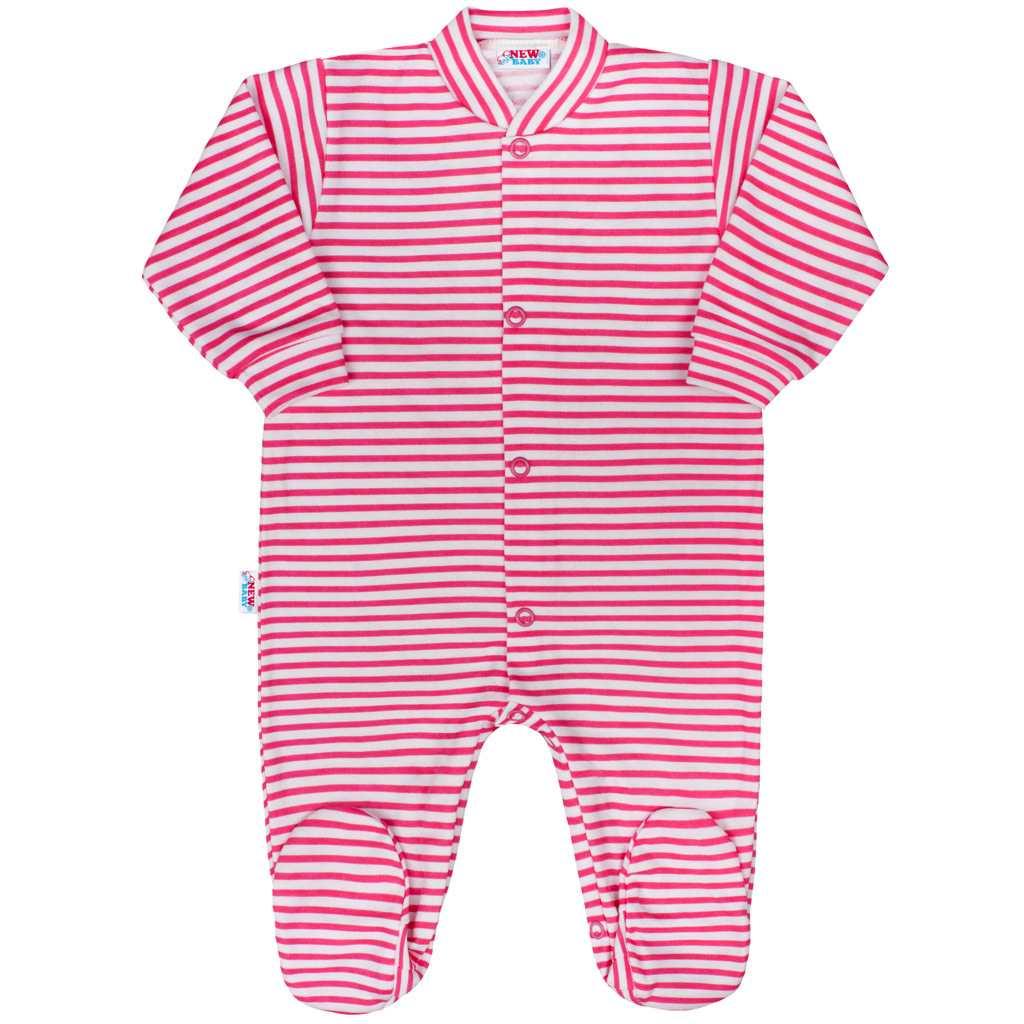 Kojenecký overal New Baby Classic pro malé miminka. Overal je v růžové pruhované barvě. Zapíná se na cvočky po celé délce a mezi nožičkami, což usnadňuje oblékání a přebalování. Kojenecké oblečení je z kvalitního materiálu 100% bavlna.
