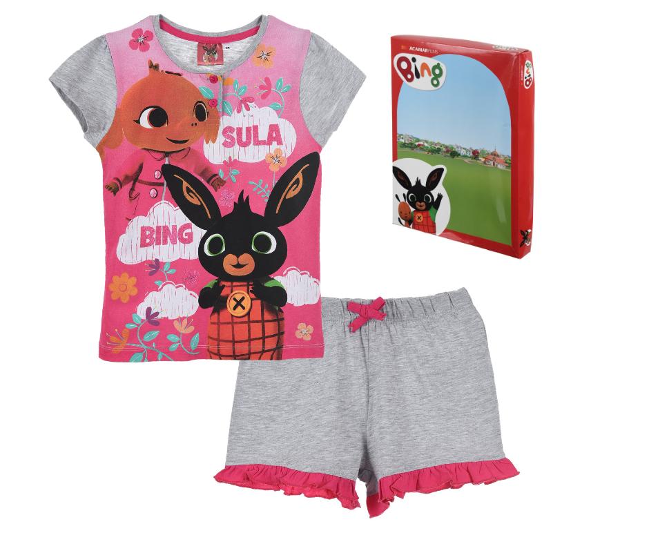 Dívčí tričko a kraťasy s motivem Zajíček Bing. Dětské oblečení je z materiálu: 100% bavlna. Barva: šedá. Baleno v dárkovém kartonovém boxu. Výrobce: Sun City.