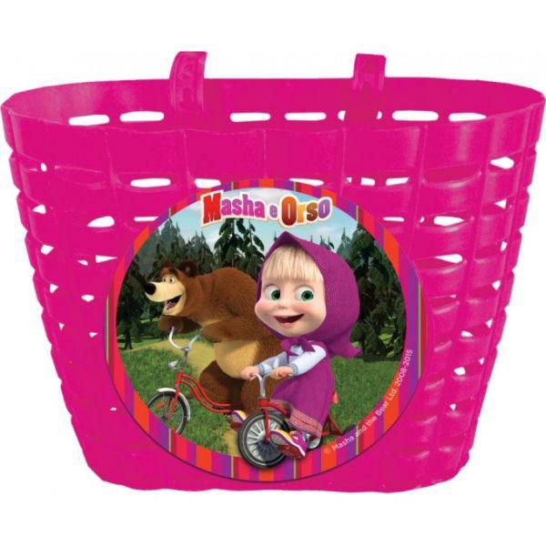 Detský košík na bicykel Máša a Medveď v ružovej farbe. Plastový košík na riadidlá na dôležité drobnosti malých cyklistov a cyklistiek. Košíček Máša a Medveď možno umiestniť na riadidlá akéhokoľvek bicykla. Košíček sa pripevňuje pomocou plastových úchytiek, ktoré možno dĺžkovo nastaviť a prispôsobiť. Možno umývať vodou. Rozmery: 20 x 13 x 13 cm.