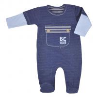Dojčenský overal v pruhovanom prevedení. Tmavo modrá farba, lemy žlté. Overal má zapínanie na cvoky medzi nožičkami. Pohodlný overal pre bábätká. Dojčenské...