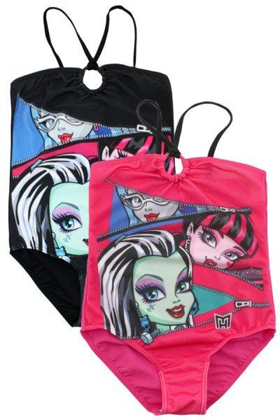 Plavky pre dievčatá s potlačou Monster High. Jednodielne plavky na ramienka sú v čiernej a ružovej variante. Detské oblečenie je z materiálu 40% polyamid, 40% polyester a 20% elastan. Rýchlo schnúci materiál. Plavky s motívom Monster High urobia radosť každej dievčine.