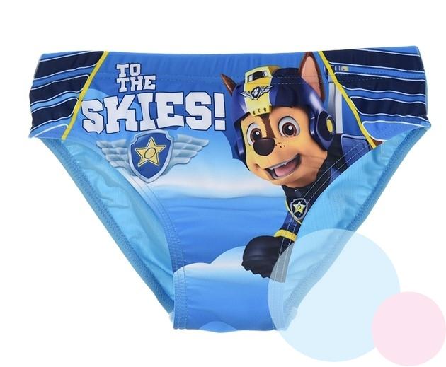 Dětské plavky pro kluky s potiskem Tlapková Patrola. Slipy plavecké jsou z materiálu 85% polyester, 15% elastan. Dětské oblečení je z přední strany s potiskem a ze zadní strany světle modré. Chlapecké plavky Paw Patrol pro vodní sporty s trendy. Výrobce: Sun City.