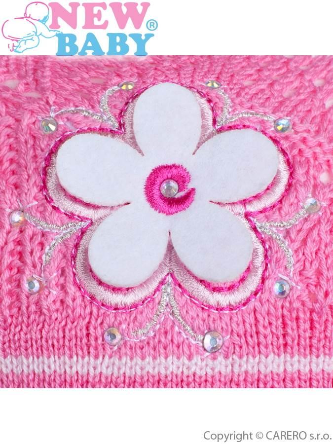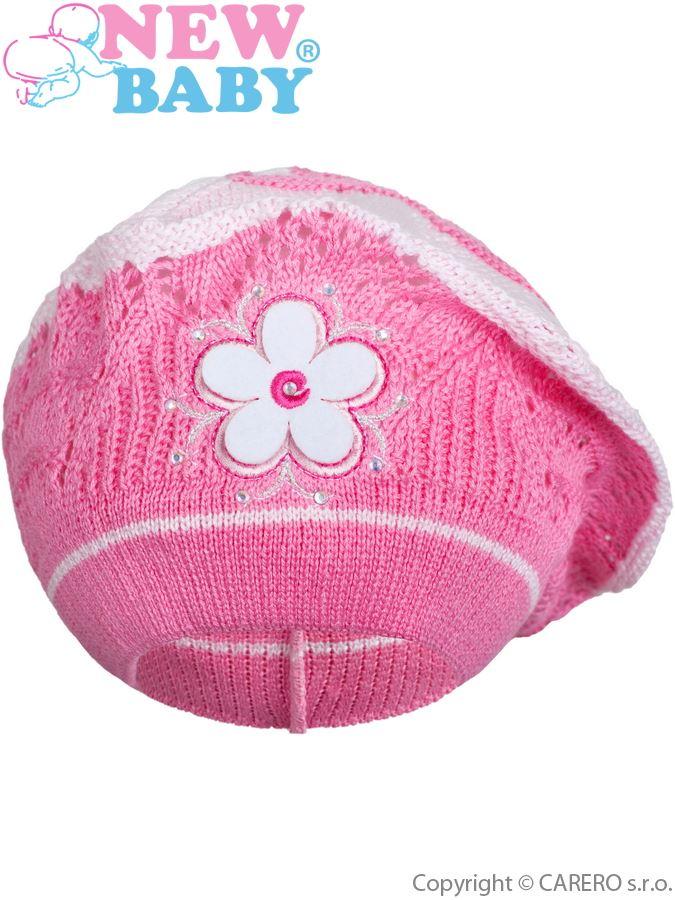 Detská čiapka je v tmavo ružové farbe. Jarná pletená čiapočka - baret New Baby. Čiapočku zdobí obrázok kytičky a veľká hviezdička v kontrastné farbe. Čiapočka pre dievčatá je ušitá z priedušného materiálu, preto je vhodná pre jarné i jesenné dni. Detské oblečenie je z materiálu 100% bavlna. Materiál je pružný. Obvod okolo hlavičky cca 40-50 cm.
