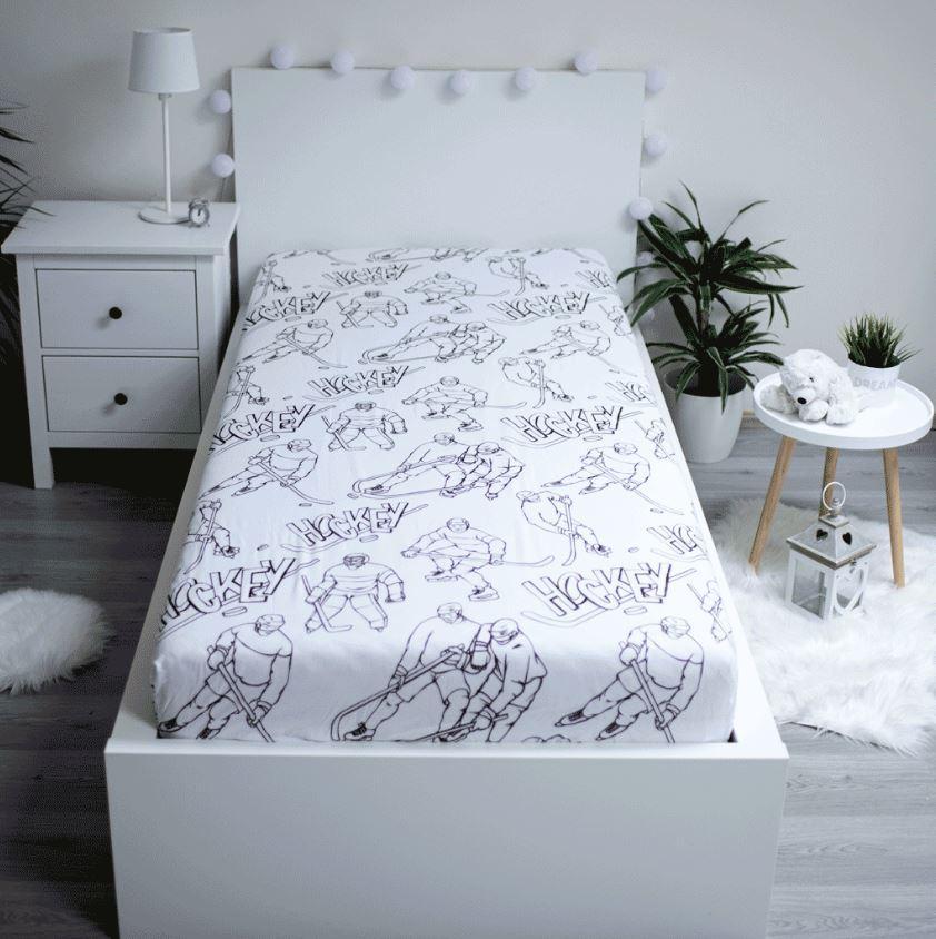 Dětské prostěradlo na klasickou postel s motivem hokejisty. Materiál prostěradla je 100% bavlna. Rozměry: 90 x 200 cm + 25 cm přesah. Oficiální licence.