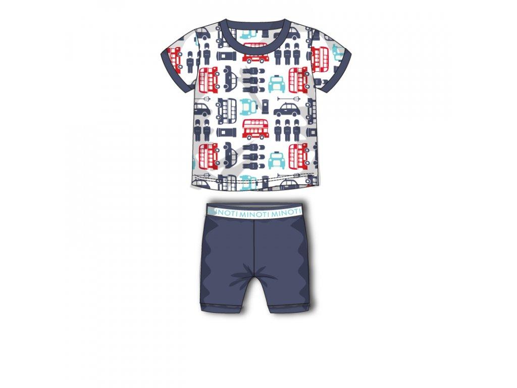 Dětské pyžamo London v modré barvě. Chlapecké pyžamo je s krátkým rukávem. Dětské oblečení je z příjemného bavlněného materiálu. Kvalitní značka Minoti.
