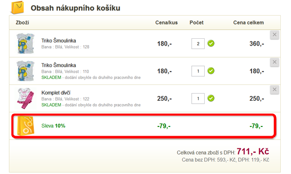 5. Po aktivaci slevy se znovu objeví nákupní košík, nyní však již s odečtenou slevou ze slevového kódu