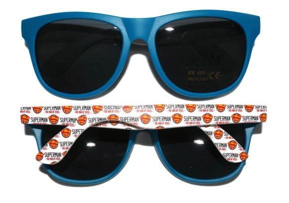 Dětské sluneční brýle s motivem Superman, 100% UV 400 ochrana. Vyhovuje evropským směrnicím PPE2016/425, je vyroben v souladu se standardními normami EU EN ISO 12312-1:2013. Materiál: plast. Rozteč cca: 13,5 cm. Délka nožiček: 13 cm. Velikost 3+, věkově cca 4 - 12 let. Barva: černá. Výrobce: E plus M.