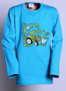 Tričko chlapecké BAGR s dlouhým rukávem tyrkysové barvy z příjemného bavlněného jednolícního úpletu. Tričko je klasického střihu. Na předním díle moderní chlapecký dětský tisk aplikovaný novou moderní technologií 3D tisku. Dětské oblečení české značky Anyface - Kilian.