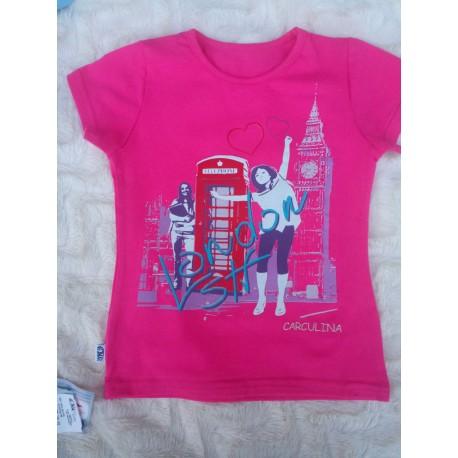 Detské tričko malinové farby. Dievčenské letné tričko s krátkym rukávom. Tričko má na predné strane potlač. Firma Vejnar "CARCULINA". Pre Vaše detičky používame pri výrobe výhradne materiály tej najlepšej kvality. Vaše deti sú v našom oblečení v bezpečí. Detské oblečenie české značky.