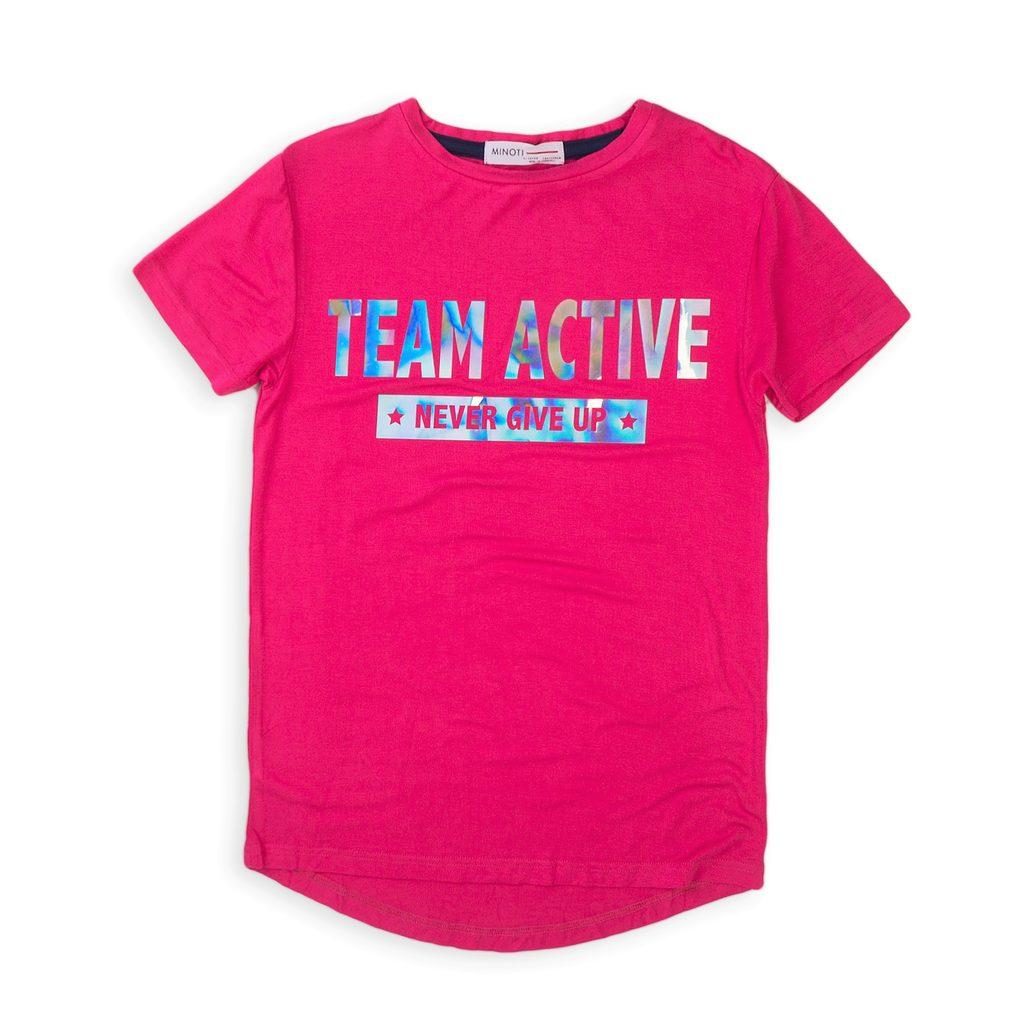Dívčí triko s krátkým rukávem. Tričko Active v růžové barvě, sportovní. Dětské oblečení je z polyesteru. Značka Minoti si zakládá na kvalitě vyráběných produktů.