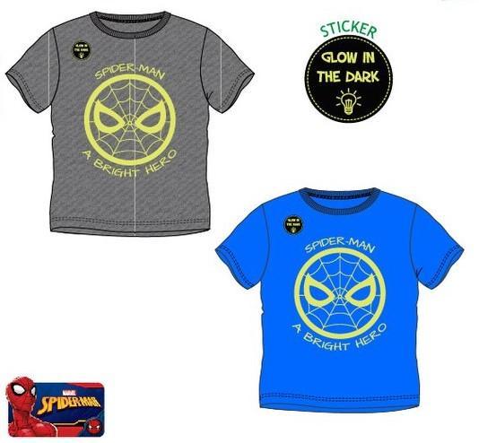 Chlapecké triko s motivem Spiderman. Tričko je s krátkým rukávem. Dětské oblečení je z materiálu 48% bavlna, 52% polyester. Barva: antracitová. Svítící ve tmě. Výrobce: Sun City.