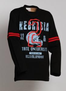 Tričko Two chlapčenské s dlhým rukávom černé farby z príjemného bavlneného jednolícního úpletu. Detské oblečenie je z materiálu 100% bavlna. Tričko je klasického strihu. Na prednom diele športová chlapčenská tlač oživená červenou číslicou aplikovanou novou modernou vystupujúcou technológiou 3D tlače. V horné časti rukávov našité po obvode dva červené pásky ladiace k farbe tlače. Tričko české značky Anyface.