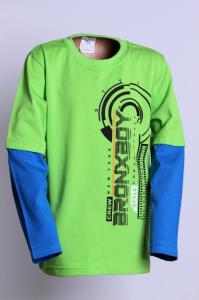 Tričko chlapecké URBAN s dlouhým rukávem zelené barvy v kombinaci s modrou z příjemného bavlněného úpletu. Dětské oblečení ze z materiálu 100 % bavlna. Tričko je klasického střihu v kombinaci krátko-dlouhý rukáv. Na levé straně předního dílu moderní chlapecký tisk.