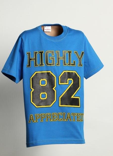 Chlapčenské tričko Highly s krátkym rukávom modré farby z príjemného bavlneného úpletu. Tričko je klasického strihu. Na prednom diele moderná športová čierná tlač oživená žltou kontúrou aplikovanou novou technológiou 3D tlače. Dĺžka trička, rukávy a priekrčník prešity do farby tlače. Materiál detského oblečenia 100% bavlna, jednolícny úplet. Česká značka Kilian.