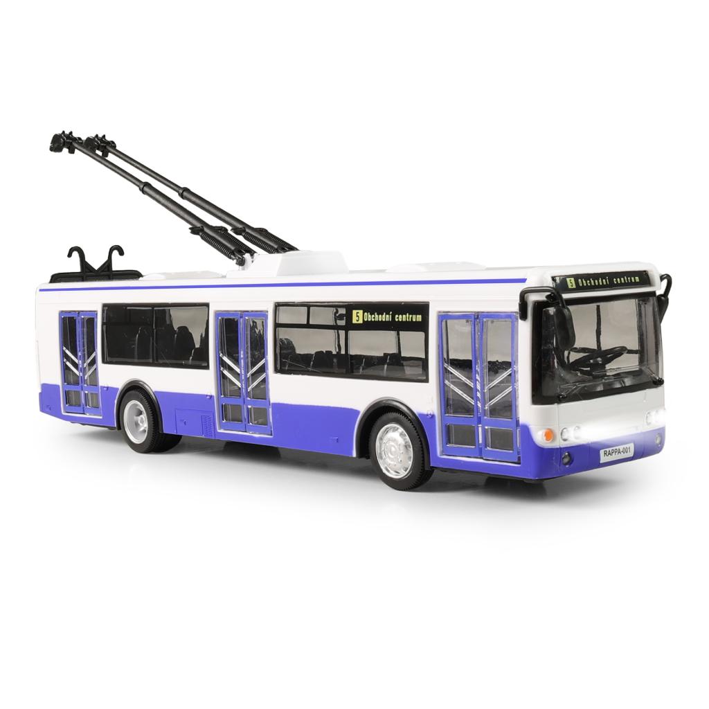 Popis - Trolejbus který hlásí zastávky česky 28 cm modrý