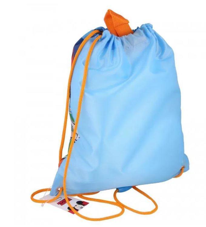 Barevný dětský vak s Mickey Mousem a Goofym. Praktický a lehký, ideální do školy, na tělocvik i výlety. Rozměr 30×25 cm, 100 % polyester, stahování na šňůrku.