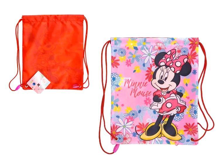 Růžový dětský vak s Minnie Mouse a květinovým motivem. Praktický, lehký a odolný. Rozměr 30×25 cm, 100 % polyester, uzavírání na šňůrku.