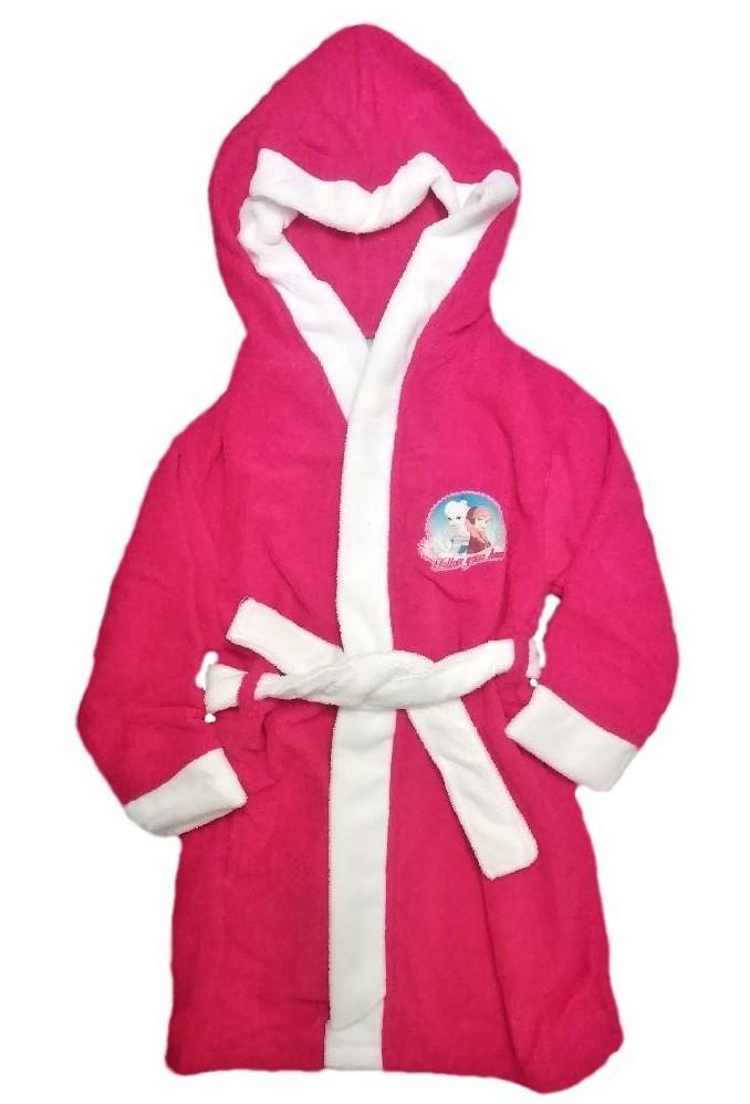 Dívčí župan s motivem Frozen Disney. Dětské oblečení je z materiálu 100% polyester. Barva: malinová. Oficiální licence.